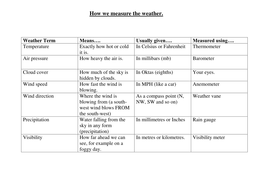 Measuring Weather Teaching Resources | Teachers Pay Teachers It also includes instruments to measure the weather such as wind sock, barometer, barograph, rain gauge and thermometer (digital and traditional), hygrometer. This set contains all of the images shown. 57 images (29 in color and 28 in B&W) (Weather symbol 11 comes in B&W only) Images saved at 300dpi in PNG files. For personal or com Subjects: › mathMath | Khan Academy Learn second grade math—addition and subtraction with regrouping, place value, measurement, shapes, and more. (aligned with Common Core standards) Add and subtract within 20 : 2nd grade Temperature Worksheets -Measuring Temperature Worksheet Temperature worksheets have numerous free PDFs for measuring temperature using Celsius scale and Fahrenheit scale, commonly called thermometers. Kelvin scale is also used to measure temperature. Temperature is just a number. Temperature is the quantitative way to express hotness or coldness. Thus temperature is measured using a thermometer. Weather Measurement Printable (3rd - 6th Grade) - TeacherVision Introduce your students to a lab that evaluates students' ability to get information from weather measurement instruments, including relative humidity and cloud movement on a map. ... WORKSHEETS. Weather Forecasting Quiz. ... ready-to-teach PBL for science, math, ELA, and social studies. End of Year Awards. 100 colorful, editable end of year ...